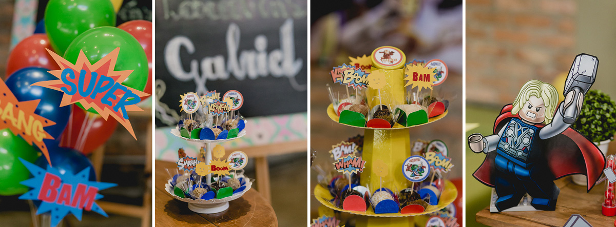 detalhes da mesa de aniversario com o tema vingadores